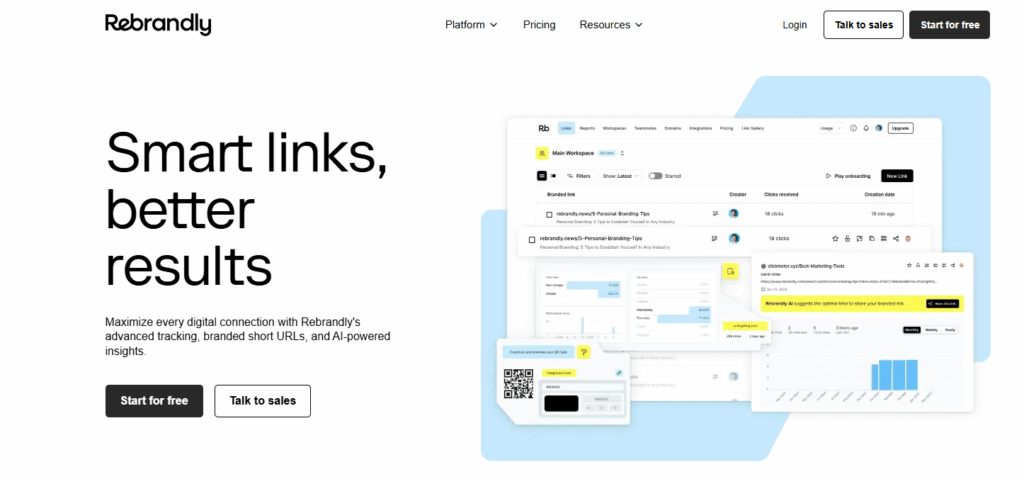 Rebrandly is all about branding. It positions itself as a link management platform, focusing on helping you create custom short links using your own domain name.